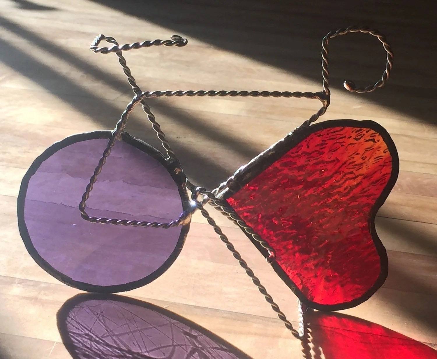 Choose your own color and heart -Stained Glass bicycle sculpture
