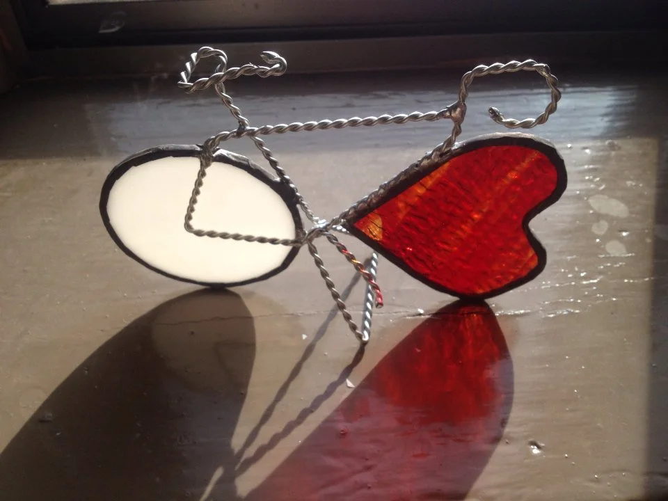 Choose your own color and heart -Stained Glass bicycle sculpture